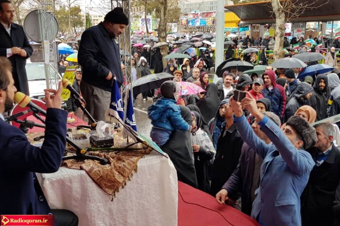 برنامه سازان رادیو قرآن روز دوشنبه 22 بهمن ماه، بار دیگر با حضوری با شكوه در كنار دیگر هموطنان در استودیو پخش زنده رادیو قرآن در خیابان آزادی تهران حضور یافتند.