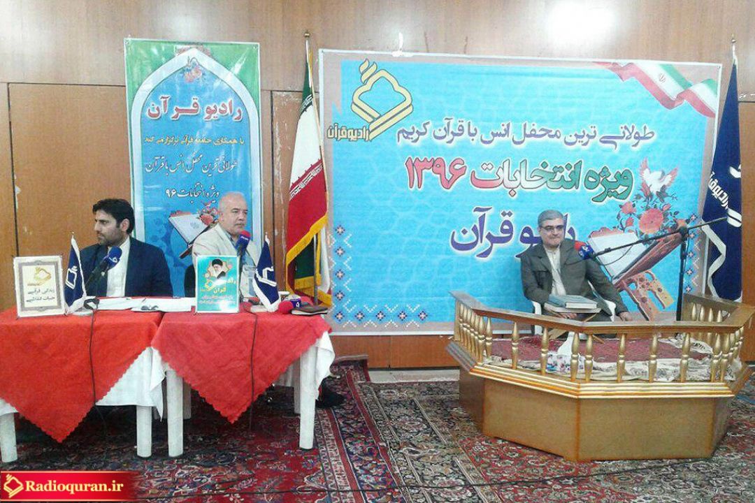 طولانی ترین محفل انس با قرآن روز جمعه 29 اردیبهشت ماه همزمان با انتخابات ریاست جمهوری و شوراهای اسلامی شهر و روستا از سوی رادیو قرآن برگزار و بیش از سی قاری و 10 حافظ ممتاز و بین المللی در آن به تلاوت قرآن كریم پرداختند.